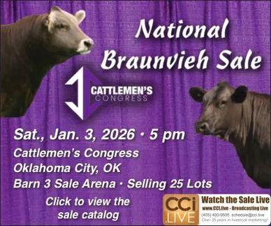 Sale Saturday, Jan. 3, 2026 OKC Fairgrounds, Oklahoma City 3001 General Pershing Blvd., Oklahoma City, OK 73107 Barn 3 Sale Arena & Meeting Room 1 p.m. BAA Annual Meeting 5 p.m. National Braunvieh Sale Sale Committee: